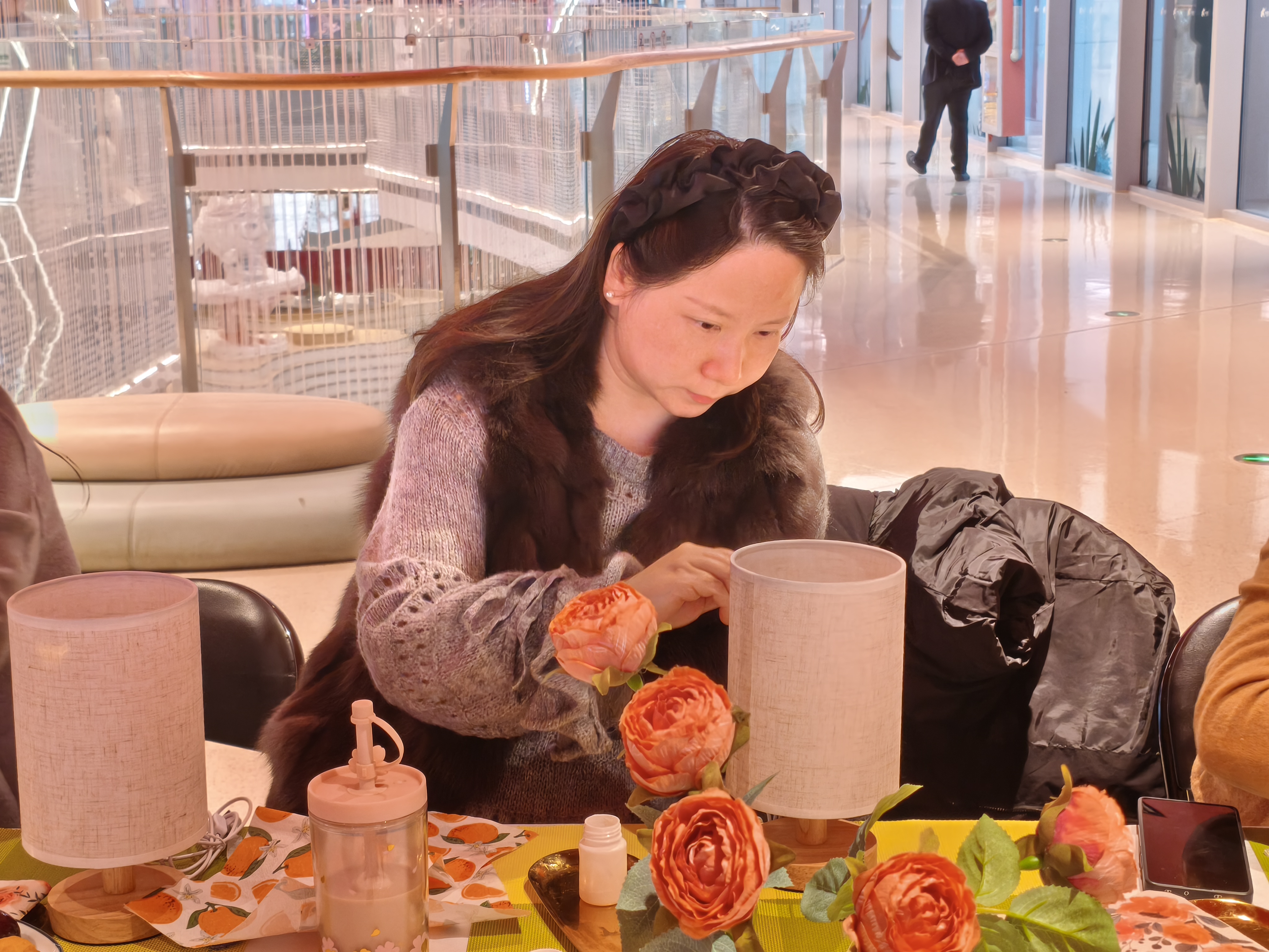 在老师的悉心指导下,美粉们将精美的宋锦图案细心裁剪、精心拼贴,再用专业技法贴合于台灯灯罩之上。现场氛围专注而温馨,有的美粉凝神沉思,有的轻声交流心得,每一双手都在织就属于自己的那份“温暖载体”。当灯光次第亮起,宋锦的精致纹样在光影间流转生辉,仿佛千年的文化记忆在当下被重新唤醒。