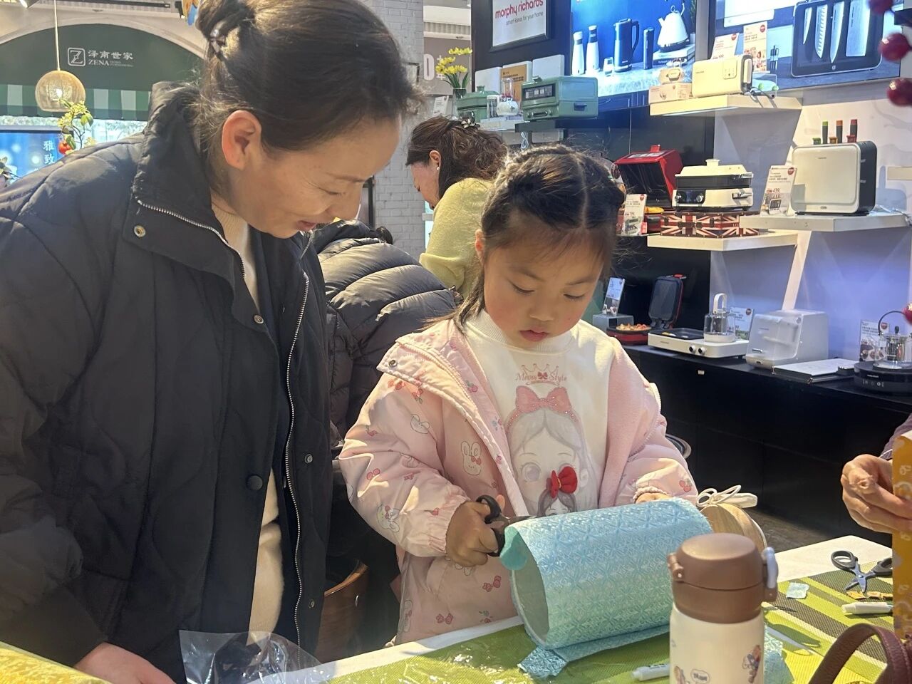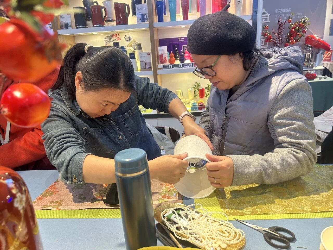 活动现场,氛围专注而温馨。美粉们沉浸在创作的乐趣中,偶尔交流心得,互相欣赏作品。一盏盏由美学老师指导、美粉亲手完成的台灯,不仅是房间里的装饰,更成为了连接过去与现在、融合文化记忆与个人情感的温暖载体。